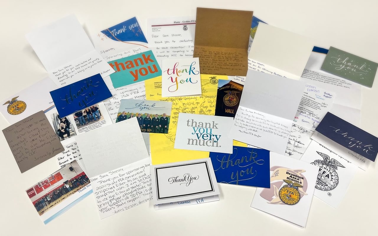 These thank-you notes are more than just pieces of paper. They reflect the positive impact that FFA has on young lives and why Paulsen is proud to support the South Dakota FFA Convention and the future of agriculture.